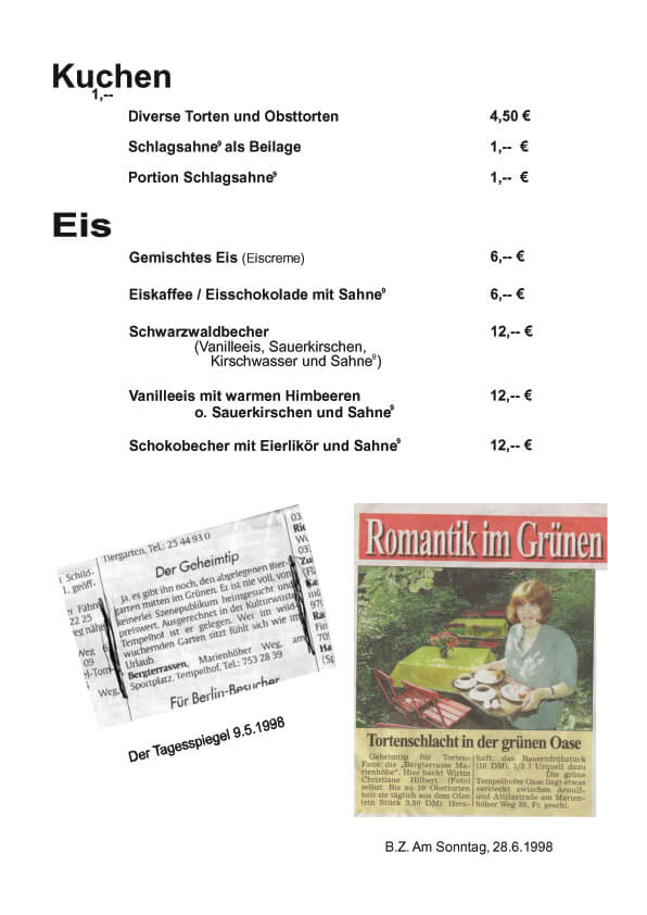 Bergterrasse Marienhöhe Speisen Bier & Wein Getränke Kuchen & Eis Spirituosen zurück nach oben Bergterrasse Startseite